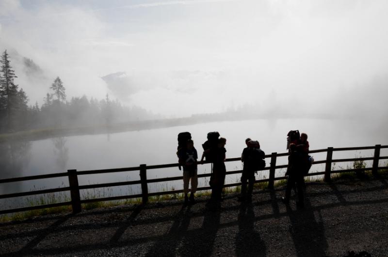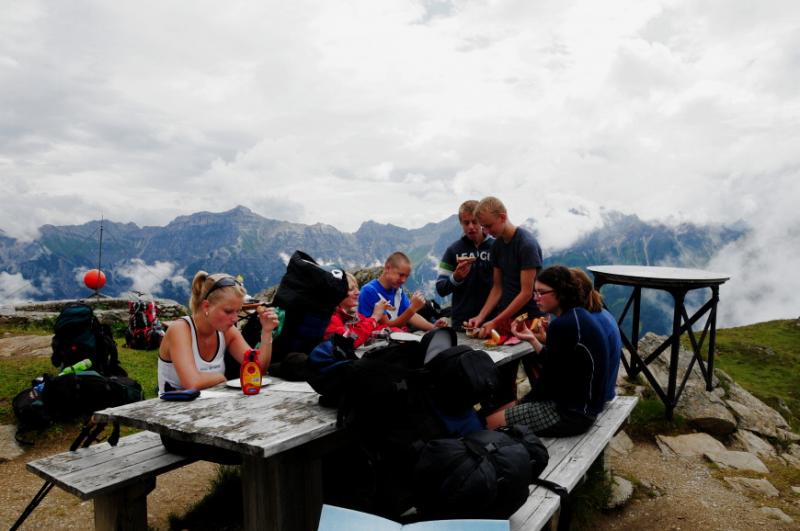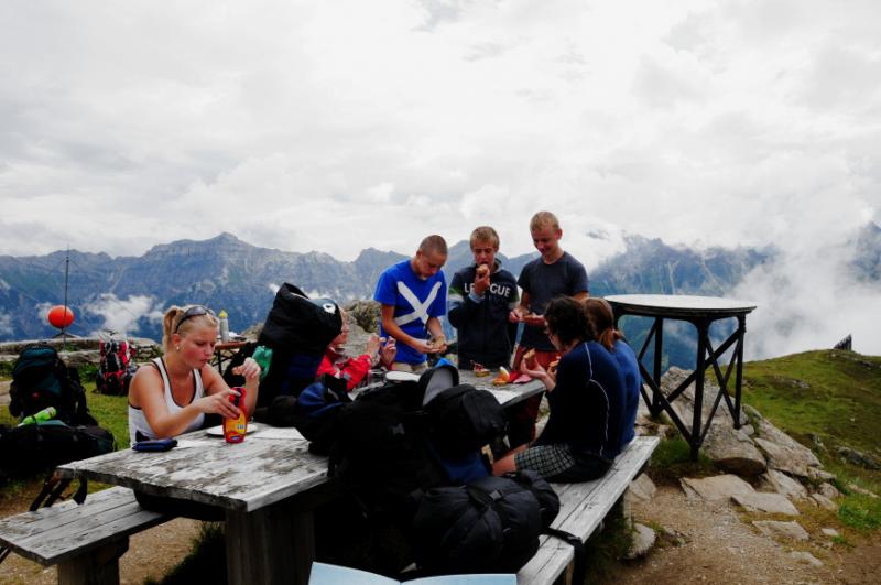 Den třetí...ještě je hluboká noc a mnohým se zdá sen o tom, jak jsou slavnou cestovatelskou celebritou a žijí v záři blesků fotoaparátů. Když se pak podesáté za noc zkutálí z karimatky a otevřou oči, světe div se, to nebyl sen, opět záře blesků! Bohužel ne těch z fotoaparátu. Nejvíc si blesků užívá Hanka. Jako odpovědná vedoucí výpravy místo spánku pozoruje oblohu, a hodinu a půl se rozhoduje, jestli vydá povel rychlého přesunu do dědovy chalupy, nebo jestli silou vůle bouřku zažene....za svítání se pak postupně probouzíme všichni...mnozí poté co sáhnou na svůj zcela mokrý spacák mají obavu, že se v noci asi báli a stalo se jim ze strachu to nejhorší co se může stát a čím se nedá mezi kamarády zrovna pochlubit...óóó jak příjemné je zjištění, že za mokrý spacák může neskutečně vydatná alpská rosa. Lezeme ze spacáků, a za deního světla se divíme, na čem jsme dokázali v noci spát. Nutno říci, že někdo se probouzí i poměrně daleko od své karimatky. Nuže, vzhůru k tyrolskému dědovi na terasu, dáme si snídani.