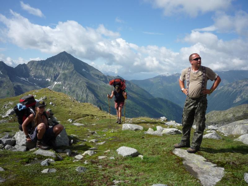 Ačkoliv srdce masívu Taur nese název Ankogel Gruppe, je jeho nejvyšším vrcholkem Hochalmspitze, který s kótou 3360 m.n.m převyšuje Ankogel o 108 výškových metrů. Celá část Ankogel Gruppe je dobře dostupná a to díky železnici a vysokohorské silnici, která vede k přehradě Kölnbreinspeicher ve výšce asi 1931 m.n.m. Této silnice jsme však nevyužili, neboť jsme přišli ze zcela opačného směru. Vycházeli jsme od stanice lanovky v blízkosti města Bad Gastein, která leží ve výšce 1588 m.n.m. Okolo 8:30 jsme se vydali směr Hagener Hütte, podle rozcestníku měla cesta trvat 2 hodiny, nám trvala 3, během kterých jsme vystoupali do 2446 m.n.m (převýšení 858 metrů) a tam kolem poledne zastavili, využili nabídky a objednali si čaj a kafe. Dále jsme šli směrem Hannover Haus (podle rozcestníku vzdálené 3 hodiny) s tím, že cestou míjíme bivak a uvidíme, podle času, kde budeme spát.Okolo půl šesté docházíme k bivaku Mindener Hütte 2428 m.n.m, kde se dá uvařit na kamnech, dá se využít toaleta a dá se doplnit voda z pramene,zde nocujeme .Ráno vstáváme v 5:30, okolo 7:30 odcházíme k Hannover Haus ve výšce 2722 m.n.m. Kolem 11:30 přicházíme k Hannover H., kdy se celé 300metrové převýšení překonává až v úseku mezi dvěma stanicemi lanovky,která kousek pod touto chatou končí. V chatě jsou toalety, sprchy a možnost ubytování, my jsme si jen objednali gulášovou polévku a něco na pití. Po domluvě s personálem jsme zanechali věci v jednom pokoji a po 12 hodině míříme k Ankogelu, podle rozcestníku vzdáleném tři hodiny po exponované cestě. Ve tři hodiny sedíme na vrcholu, ve výšce 3252 m.n.m. (převýšení 530 metrů). Před 16:00 scházíme k Hütte, popijeme čaj a slézáme kousek, k horní stanici lanovky, kde nocujeme. Od 9:00 scházíme k Osnabrücker Hütte do výšky 2022 m.n.m. Tam jsme asi po 4,5 hodinách klesání (podle rozcestníku 3,5hod.)Kolem 15:30 vyrážíme okolo přehrady najít místo pro přespání. Po hodině a půl chůze( podle rozcestníku také po 1,5 hod.)nacházíme odbočku, kudy zítra půjdeme, a asi 10 minut cesty po ní necháváme věci pod přístřeškem(1998 m.n.m.) a nalehko odcházíme k betonové hrázi. Cesta trvá hodinu a půl(i podle rozcestníku) Pohybujeme se stále po zpevněné asfaltce ve výšce asi 2000 metrů. Cestou zpět nás zastihl déšť a cestu k věcem ,psanou na 1,5 hod., jsme tedy zvládli za 45 minut. V 19:30 jsme pod stříškou a chystáme spaní.Ráno vstáváme v 8:00 a odcházíme směrem k bivaku Ali-lanti,ve výšce 2685 m.n.m. který je psaný na tři a tři čtvrtě hodiny. V dešti se tam ve 12:30 dostáváme(stoupání 687 metrů). Někteří ihned schází ke Gasthof Prossau ve výšce 1279 m.n.m. aby se pomocí autobusů a stopování dopravili do Bad Gasteinu a nakonec do Sportgasteinu, k lanovce, kde bylo zaparkované auto a poté přijeli naproti ostatním. Cesta k Prossau je psaná na tři a čtvrt hodiny, my jsme ji opravdu svižným tempem, ve dvojici, zvládli za 2,5 hodiny(sestup 1406 metrů)....